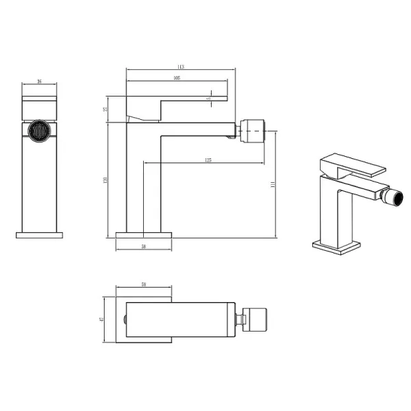 Смеситель для биде Boheme Qubic 476-BRB брашированная бронза купить