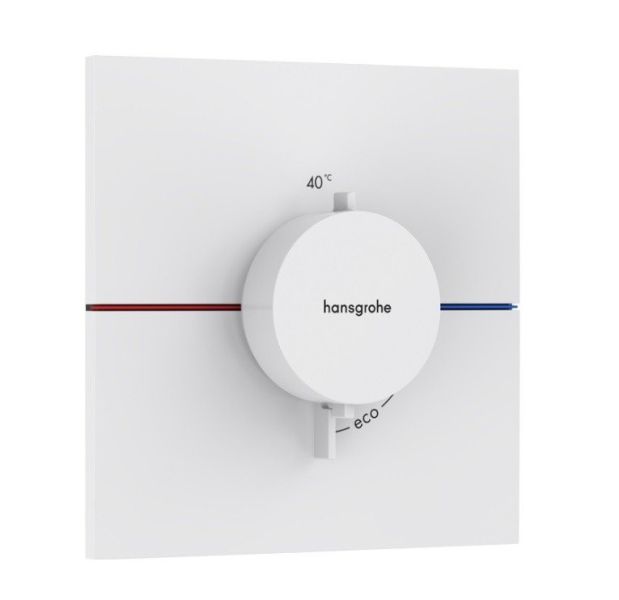 Hansgrohe ShowerSelect Comfort E 15574700 Центральный термостат - внешняя часть (белый матовый). Без запорно-переключающего клапана. Контроль температуры и расхода воды; контроль расхода воды с функцией остановки; картридж термостата; максимальный расход при 3 бар: 34,8 л/мин.; расход верхнего выхода: 32 л/мин; расход нижнего выхода: 32 л/мин; расход при одновременном использовании всех выпусков: 34,8 л/мин.; мин. рабочее давление: 1 бар; макс. рабочее давление: 10 бар; накладка может быть выровнена на +/- 3°; простой монтаж благодаря предварительно смонтированному функциональному блоку, ручки всегда на одной высоте независимо от глубины установки базового комплекта; безопасная остановка при 40 °C; ограничение температуры регулируемое; термостат дает возможность термической дезинфекции; материал ручек: металл.; дополнительно необходима скрытая часть арт. 01500180, в комплект поставки не входит. ShowerSelect вызовет ваши любимые ощущения от принятия душа одним нажатием кнопки. Интуитивное управление и высокая точность. Система управления душем скрытого монтажа позволяет увеличить пространство под душем и сочетает в себе передовые технологии hansgrohe с качеством дизайна.