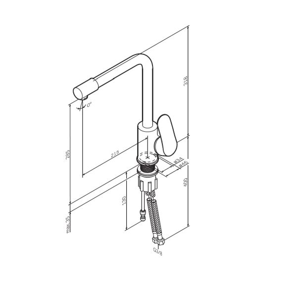 • Высота смесителя: