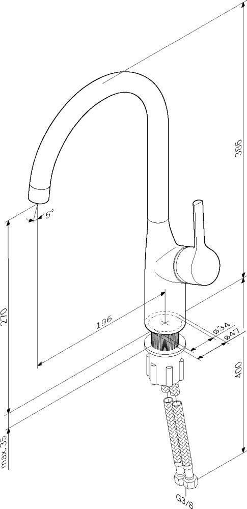 • Высота смесителя:
