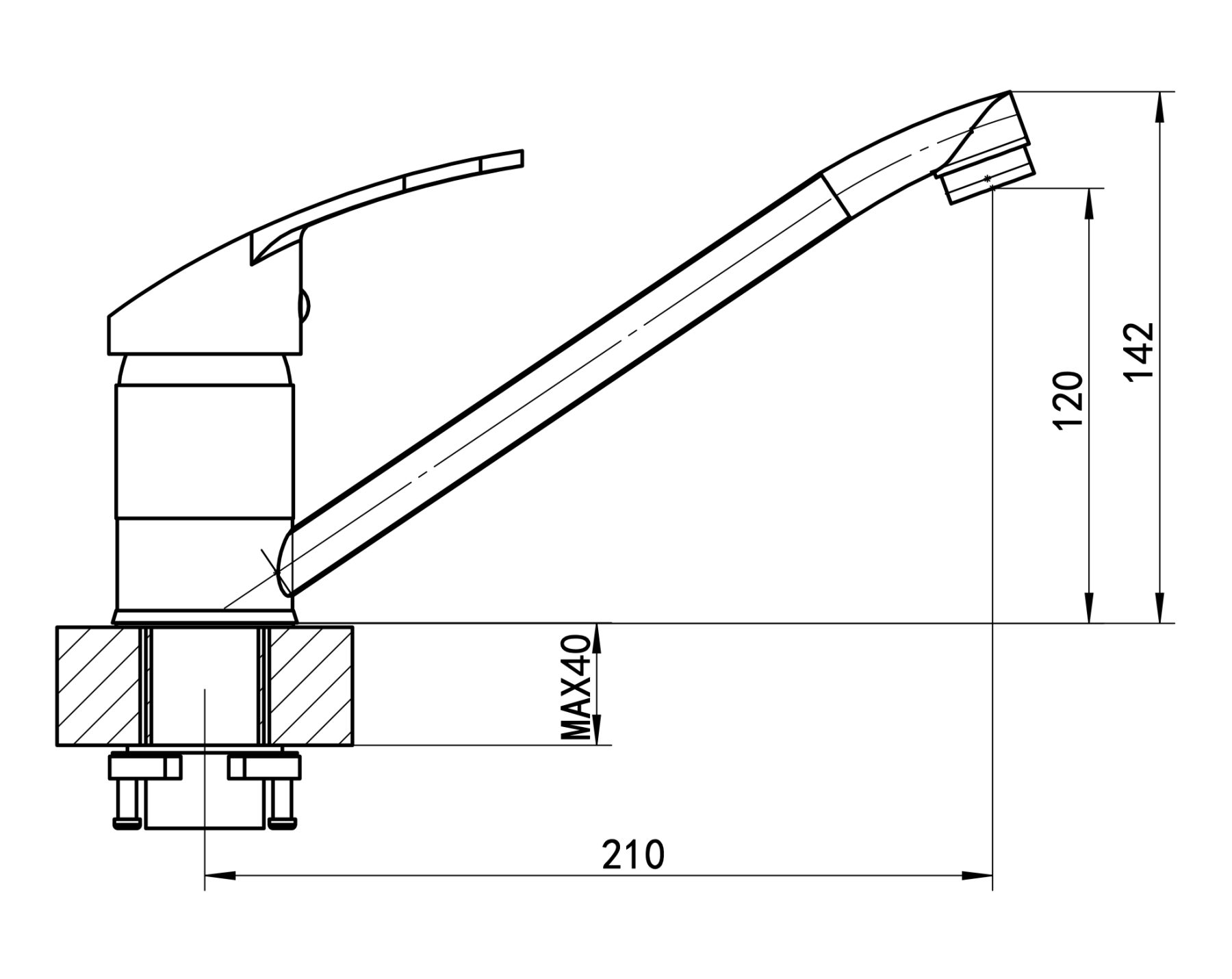 • Высота смесителя: