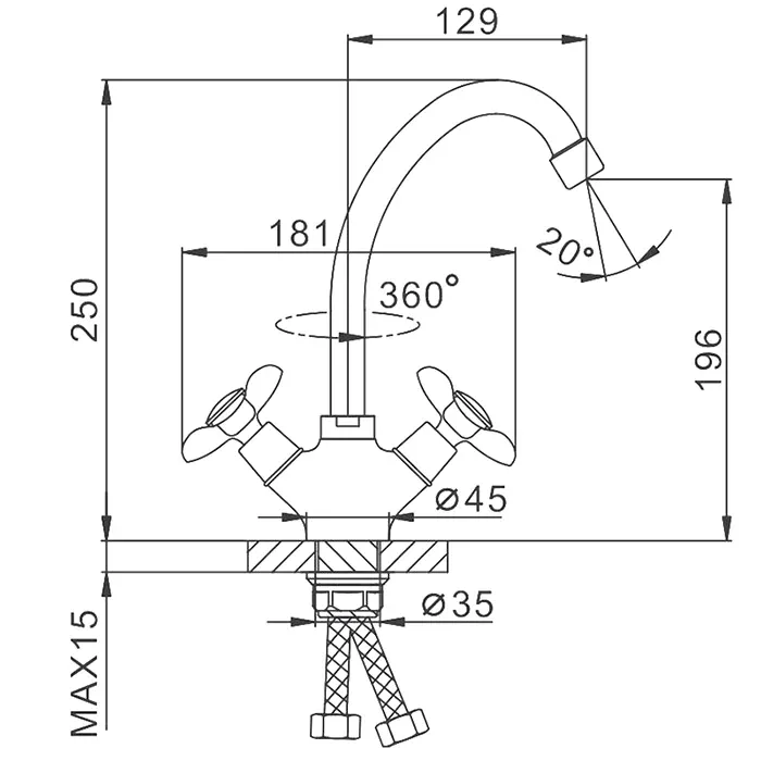 - Высота смесителя:25