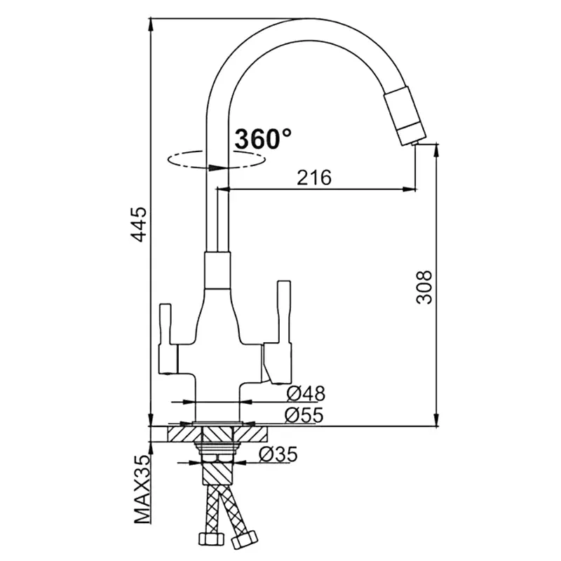 - Высота смесителя:44.5