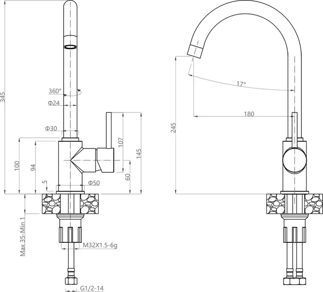 Смеситель для кухни GranFest 3650 черный Подробнее