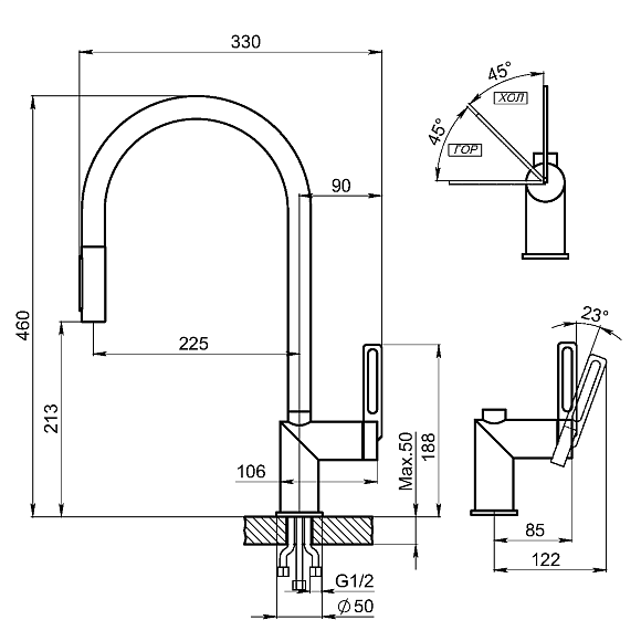 Смеситель для кухни Granula 8172, АРКТИК (БЕЛЫЙ) белый