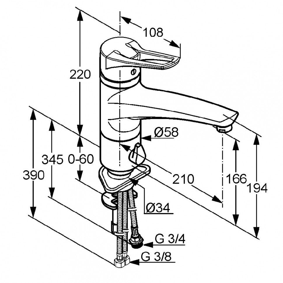 • гибкая подводка G 3/8
