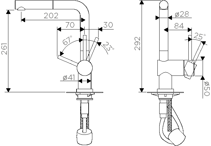 • Гибкий излив: