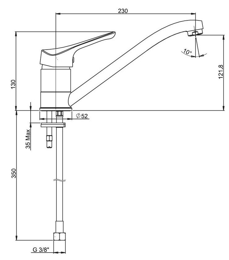 • Поворотный излив для комфортного использования на кухне.