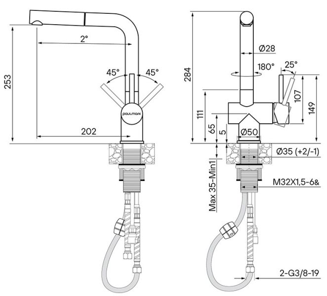 - Выдвижной излив:да