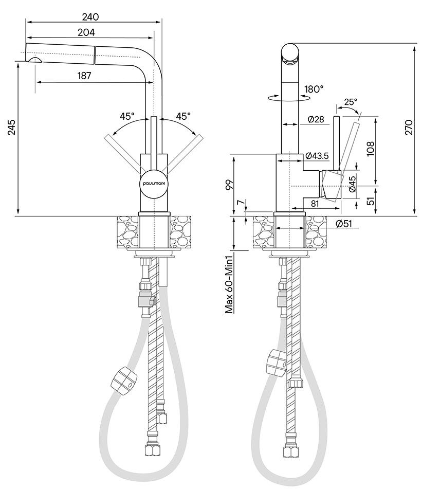 Смеситель для кухни с выдвижным шлангом, Ka214311-431Изготовлен из высококачественной латуни, которая отвечает высочайшим европейским стандартам качества, не содержит свинца, не разрушается со временем и безопасна для здоровья.Вытяжной шланг