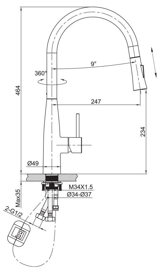 • Высота смесителя: