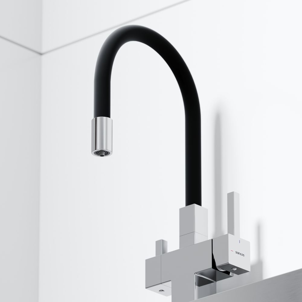 Смеситель для кухни SANCOS Arno с гибким изливом и возможностью подключения фильтра для воды, цвет хром, арт. SC4005CHФункция "Холодный старт" - при включении смесителя активируется холодной поток, для экономии горячей водыАэратор, гибкая подводка, ключ и крепления для монтажа