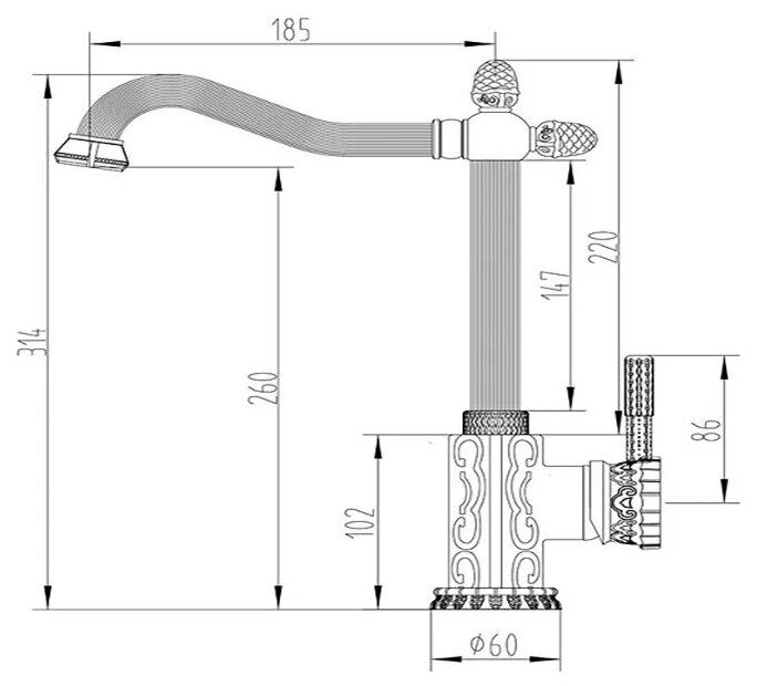 - Высота смесителя:31.4