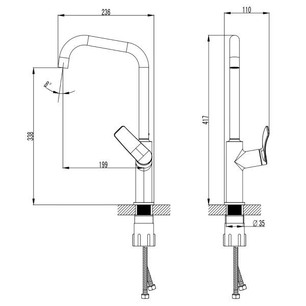Смеситель для кухонной мойки Azario ABILITY AZ-VQR568073C высокий излив
