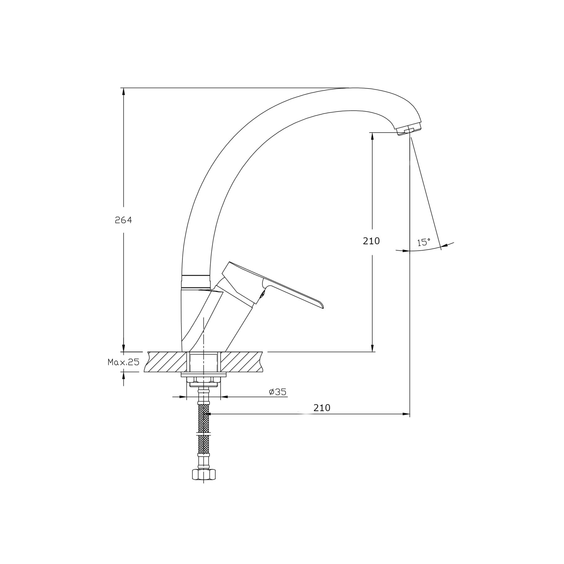 Смеситель для кухни с поворотным изливом RUSH Victori арт.VI7135-22 c металлической ручкой и имеет рычажное управление.В смеситель установлен картридж D-35 (RSH102) с керамическими пластинами. Высота смесителя 250 мм. Излив поворотный 360гр, 210 мм. Высота излива до аэратора 210 мм. Аэратор изготовлен из пластика с нержавеющим корпусом, угол наклона аэратора -15 гр.В комплекте гибкая подводка с латунными гайками 35см - 2 шт, присоединительная гайка S-30мм, втулка-27мм, фум-лента, индивидуальный пакет, паспорт, гарантийный талон.
