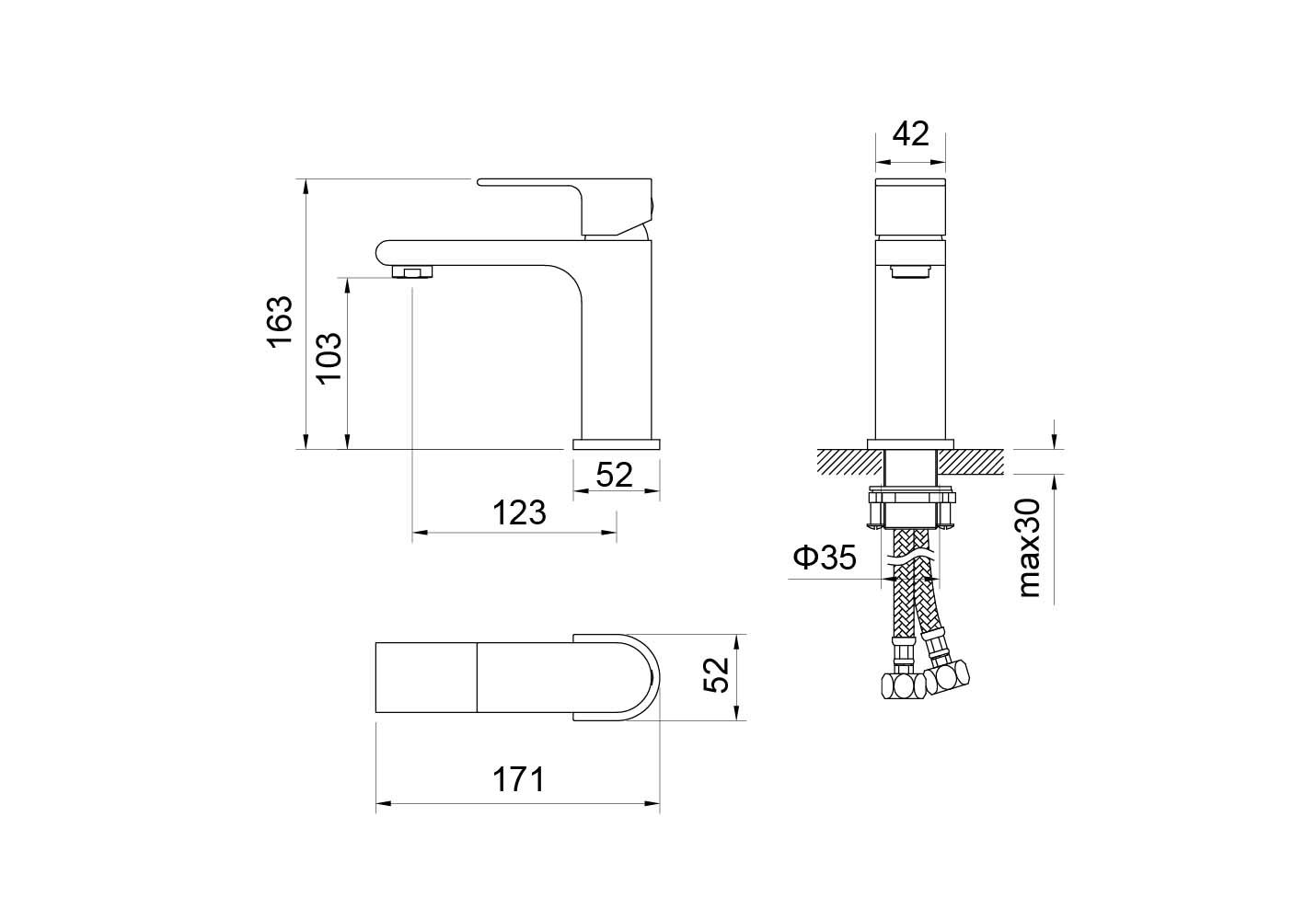 • Высота смесителя: