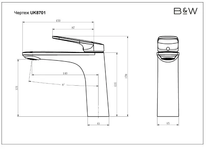 Смеситель для раковины датского производителя Black&White. Материал корпуса выполнен в минималистичном стиле и изготавливается из сантехнической латуни. Сплав безопасен для здоровья и не подвержен коррозии весь срок службы изделия. Для управления потоками воды установлен керамический картридж повышенной пропускной способности, установленный сверху корпуса. На изделии имеется вытяжной излив с аэратором для комфортного использования в бытовых нуждах.