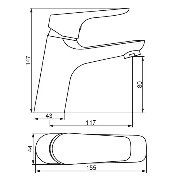 • Высота смесителя: