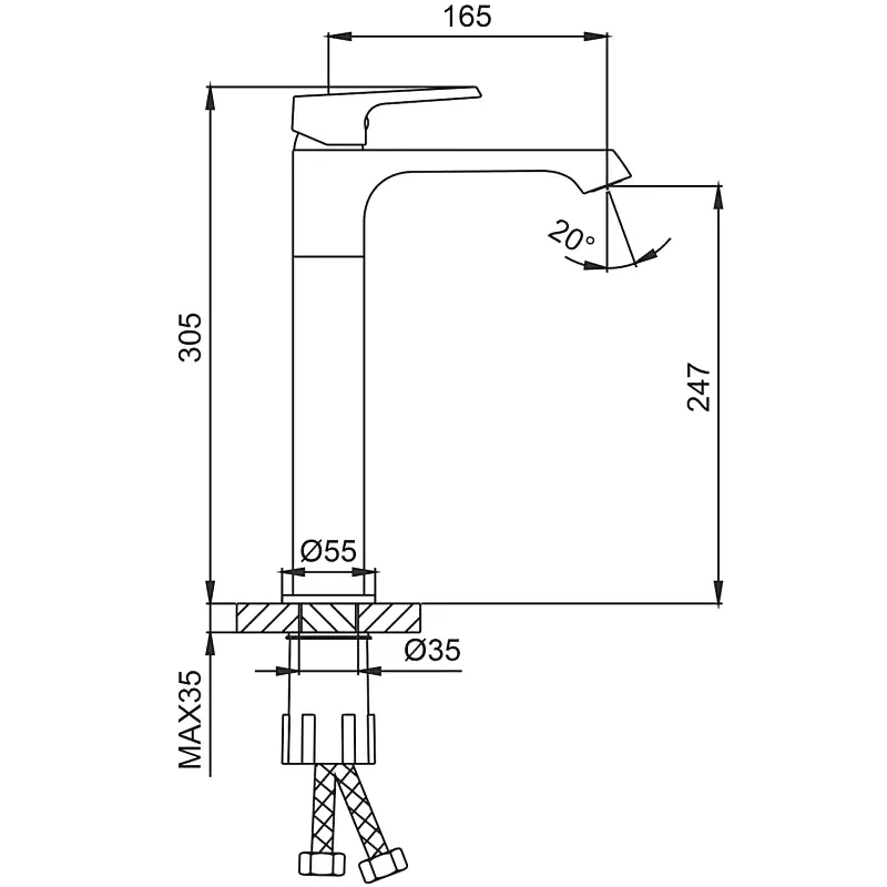 • Высота смесителя: