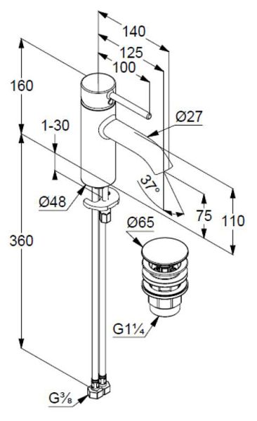 • однорычажный смеситель на умывальник 75 DN 15