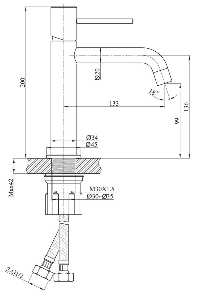 • Высота смесителя: