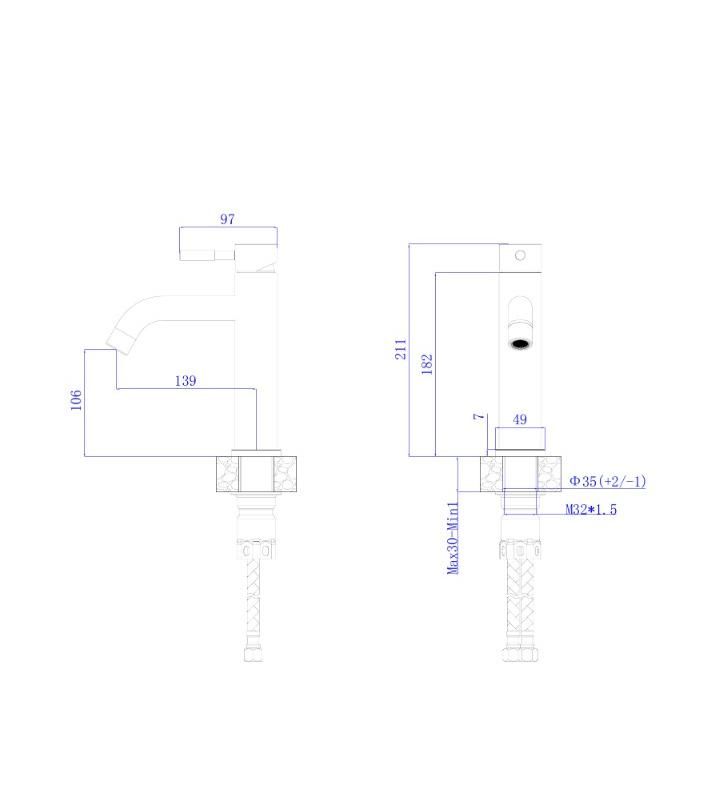 • Высота смесителя: