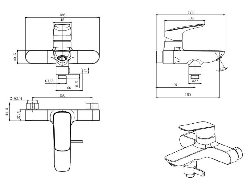 Межцентровое расстояние (мм): 150