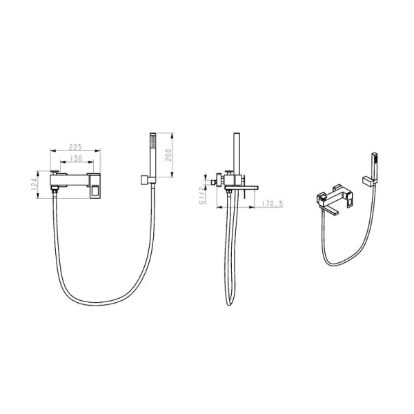 • Оснащение: аэратор, душевая лейка, душевой шланг, эксцентрики, настенный держатель