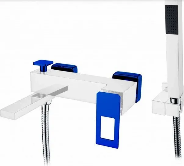 Смеситель для ванны и душа Boheme Q, с душевым гарнитуром, цвет белый/синий, 143-WUW