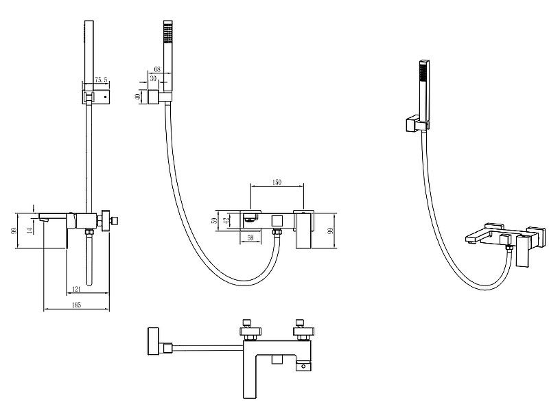 Длина душевого шланга: 150 см.