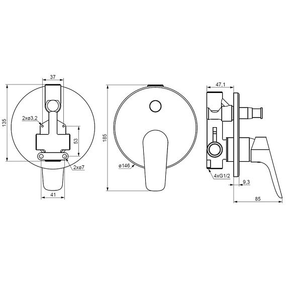 Смеситель для ванны Damixa Jupiter 777100000 хромСмеситель для ванны и душа Damixa коллекции Jupiter - минималистичный дизайн смесителя, монтируемого в стену, позволит грамотно использовать пространство. Его диаметр составляет всего 135 мм, поэтому это идеальное решение для небольших помещений. Встраиваемые в стену смесители сохраняют эстетику ванной комнаты благодаря тому, что все непрезентабельные части скрыты. Размер смесителя (Ш/Г/В): 146x85x185 мм. Материал - латунь. Цвет - хром. Тип управления - однозахватный.