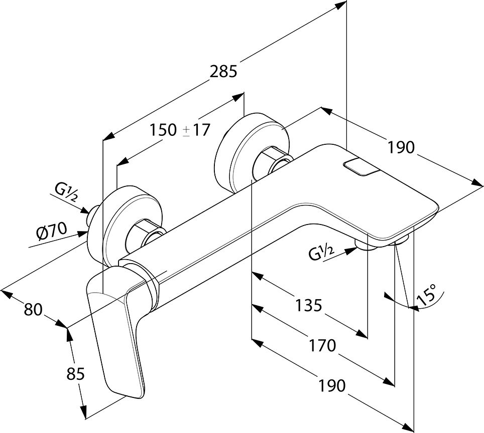 - однорычажный смеситель для ванны и душа DN 15