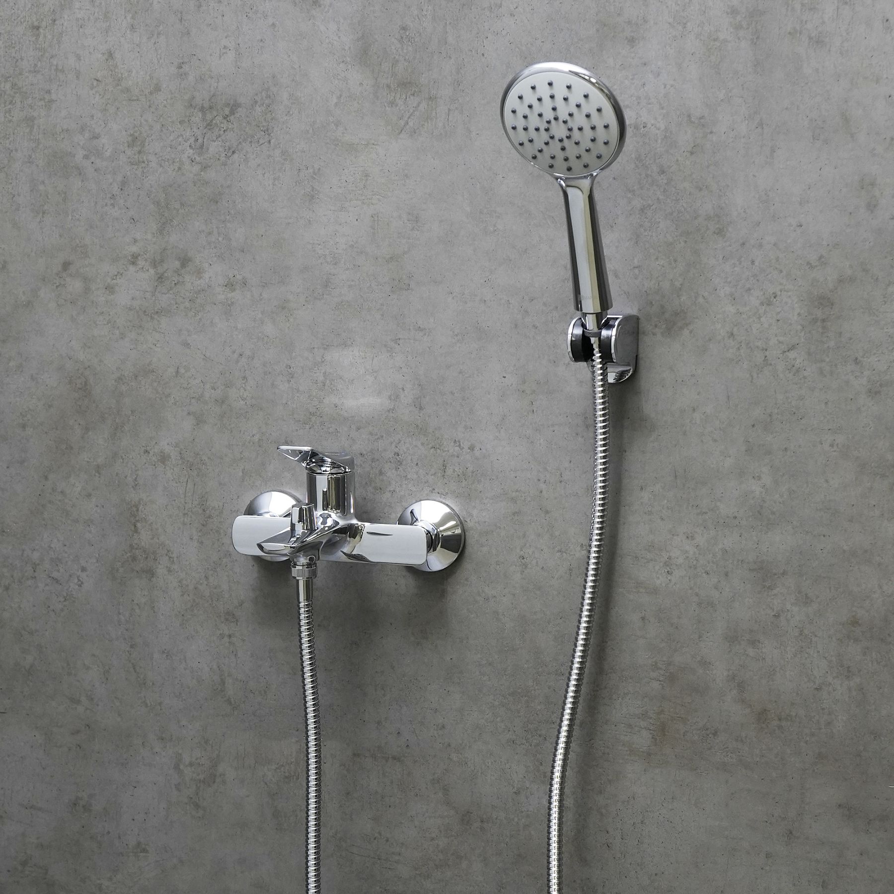 - Аксессуары в комплекте: 1-функциональная лейка Ø106×235 мм, настенное поворотное крепление, душевой шланг 1,5 м