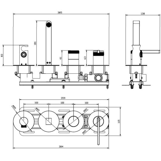 Смеситель для ванны настенный 4 отверстия DQ Bonn хром (DA1704801) купить