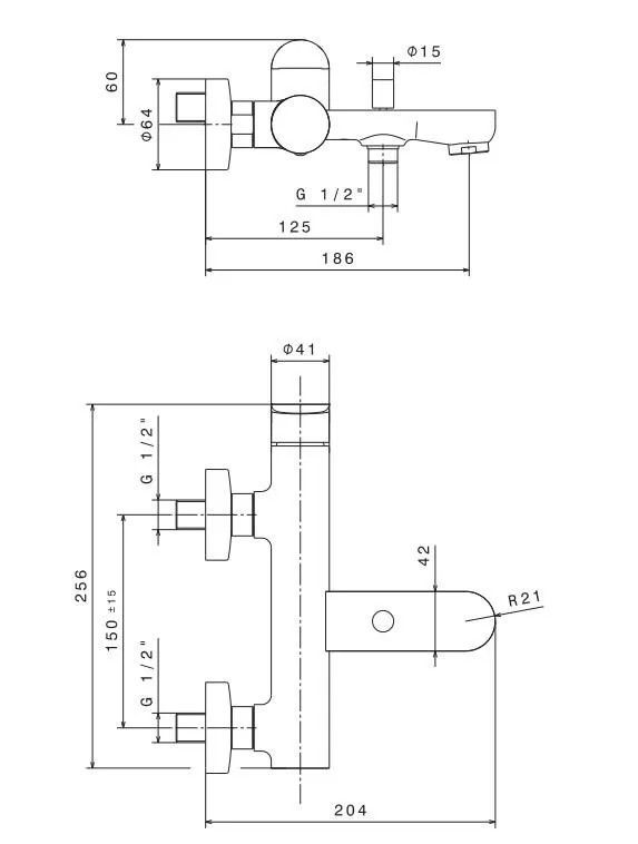 69440KM.21.018 Смеситель для ванны OLE настенный с дивертором ванна/душ, без лейки, хром Подробнее