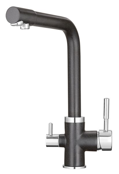 Смеситель для кухонной мойкиЦветовая гамма: Алюминиум, Классик, Антик, Песок, Пирит, Базальт, Арктик, Эспрессо, Графит, Черный, ШварцГибкая подводка (3 шт.); набор для крепления; прокладки уплотнительные (2 шт.); аэраторГарантийный срок от производителя - 5 лет