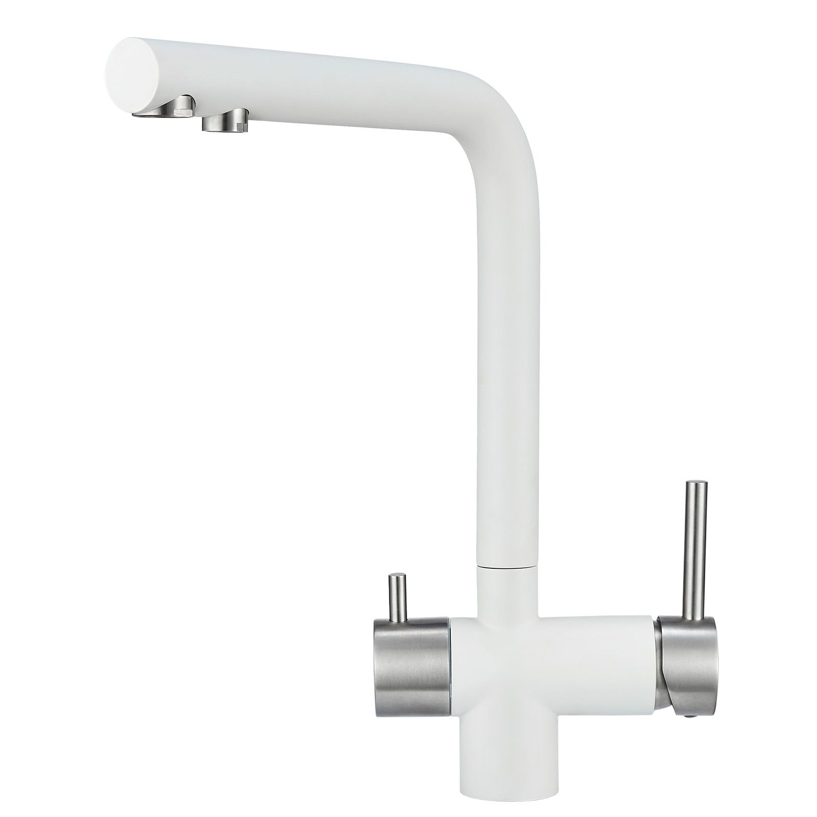 Смеситель для кухонной мойкиЦветовая гамма: Алюминиум, Классик, Антик, Песок, Пирит, Базальт, Арктик, Эспрессо, Графит, Черный, ШварцГибкая подводка (3 шт.); набор для крепления; прокладки уплотнительные (2 шт.); аэраторГарантийный срок от производителя - 5 лет