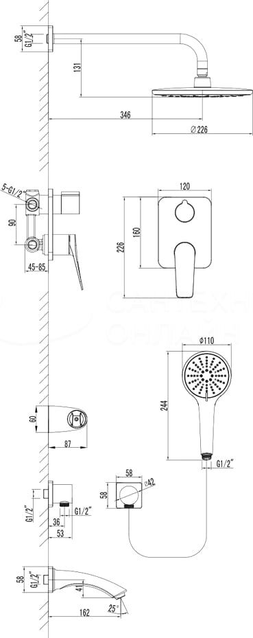 Смеситель Lemark Bronx LM3722BL для ванны и душа, встраиваемый купить