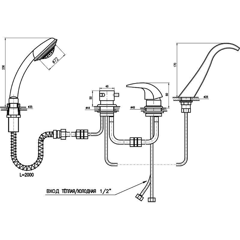 С ручным душем, Каскадный излив