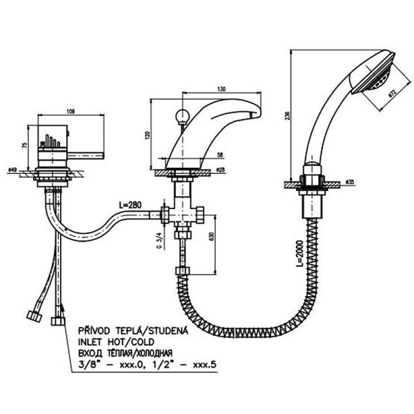 Смеситель на борт ванны Rav Slezak Dunaj DT271.5S хром