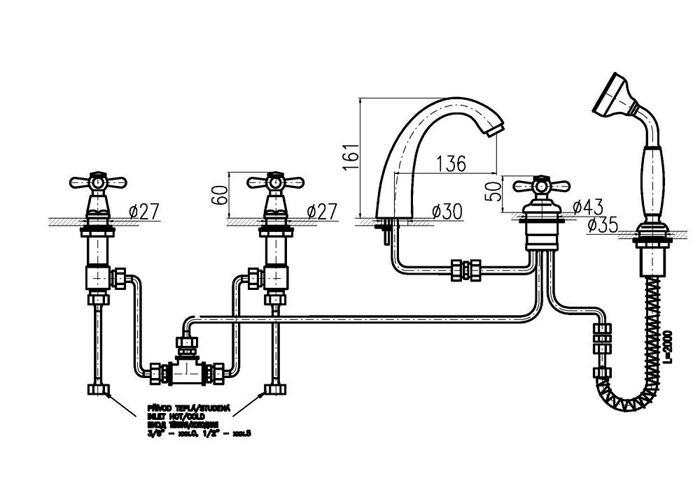 Смеситель на борт ванны Rav Slezak Morava retro MK176.5PSM бронза