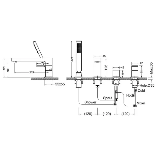 • Смеситель врезной - 1 шт.