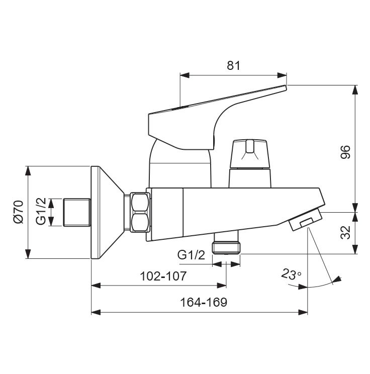 NEXT Настенный смеситель для ванны/душа, с душевым гарнитуром (душевая лейка Ø70 мм, металлический шланг 1500 мм, держатель для лейки).Смеситель однорычажный