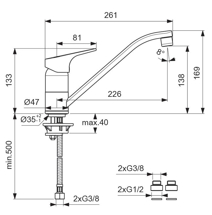 - Высота смесителя:16.9