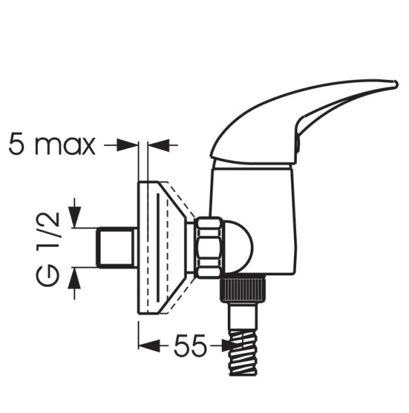 ORION Настенный смеситель для душа, душевой гарнитур в комплекте (душевая лейка Ø70 мм, металлический шланг 1500 мм, держатель для лейки).