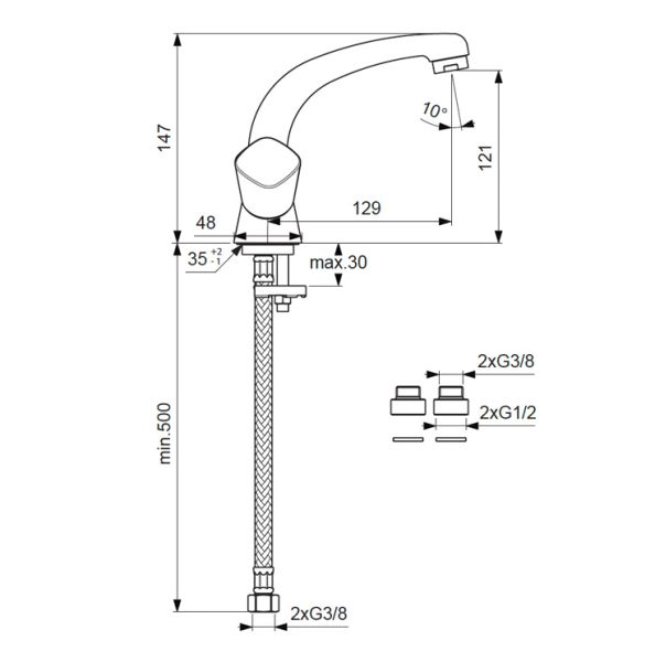 - Высота смесителя:14.7