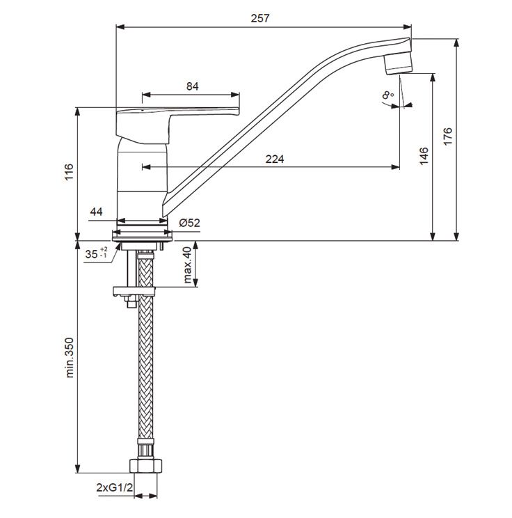 Длина излива, мм: 224