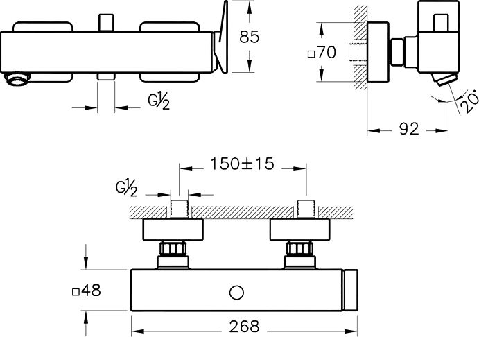 Смеситель VitrA Brava A42613EXP для ванны и душа купить