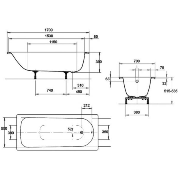 Стальная ванна Kaldwei Eurowa 312-1 170x70 купить
