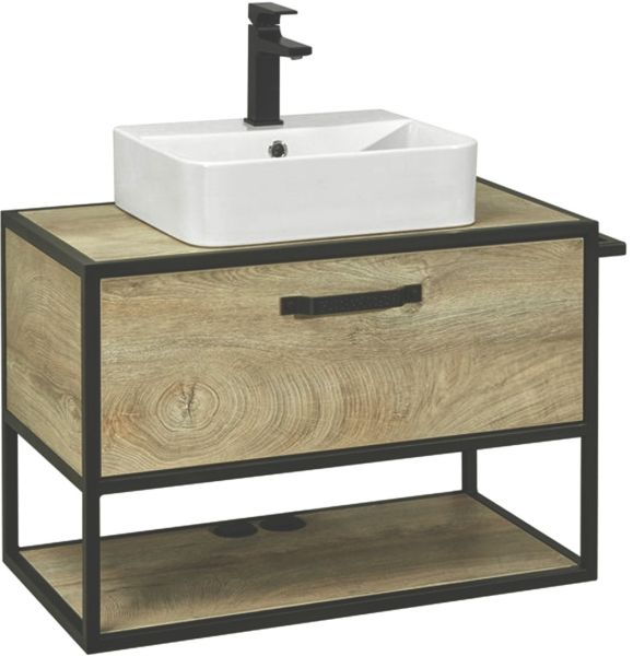 Столешница Лофт Фабрик в цвете Дуб Эндгрейн выполнена из влагостойкой ламинированной плиты. Столешница является необходимым дополнительным элементом для тумбы Лофт Фабрик 80 в Дуб Эндгрейн при выборе опции с накладной раковиной.